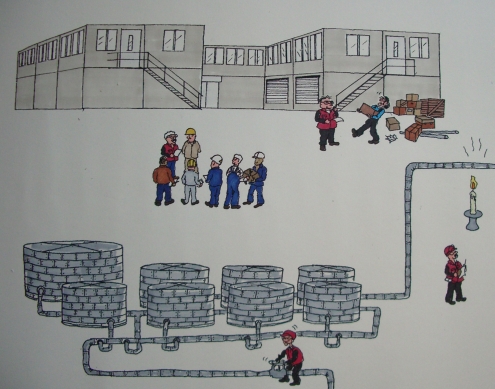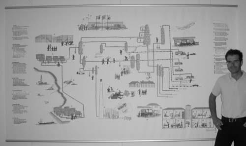 Das Raffinerie-Schema wurde auf eine Art Leinwand in 300x170cm gezogen und dann am 20. August 2005